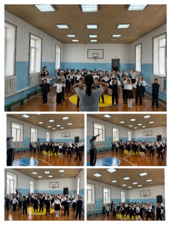 Оқушылармен жас ерекшеліктеріне қарай бірыңғай жаттығу өткізілді. Мақсаты: Дене жаттығуын тұрақты түрде жүргізу арқылы оқушылардың