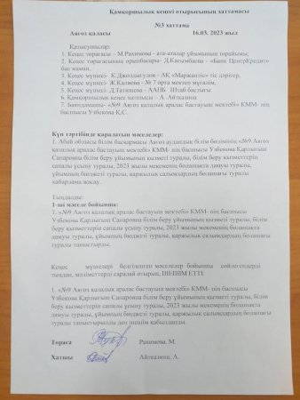 2023 жылдың 16 наурыз күні Абай облысы білім басқармасының Аягөз ауданы білім бөлімінің «№9 Аягөз қалалық аралас бастауыш мектебі» КММ-де Қамқоршылық кеңестің Бірыңғай отырыс күні болып өтті