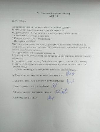 Абай облысы білім басқармасының Аягөз ауданы білім бөлімінің «№9 Аягөз қалалық аралас бастауыш мектебі» КММ-де тегін ыстық тамақпен қамтамасыз ету бойынша кезекті тексеріс өтті