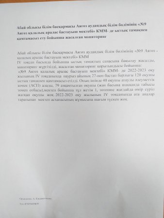 Абай облысы білім басқармасының Аягөз ауданы білім бөлімінің «№9 Аягөз қалалық аралас бастауыш мектебі» КММ бос тұрған есепші