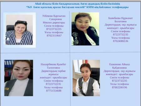 Абай облысы білім басқармасының Аягөз аудандық білім бөлімінің "#9 Аягөз қалалық аралас бастауыш мектебі" КММ-сі мектеп әкімшілігінің