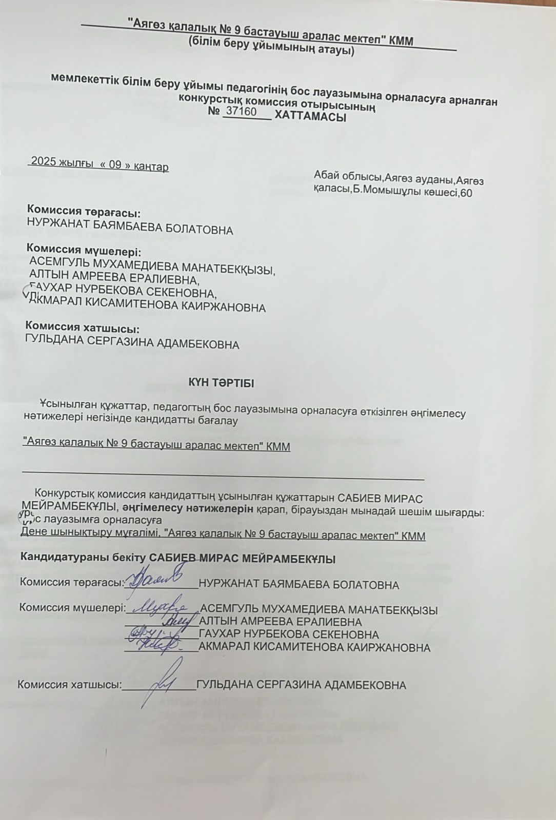 Абай облысы білім басқармасының Аягөз ауданы білім бөлімінің «№ 9 Аягөз қалалық аралас бастауыш мектебі»