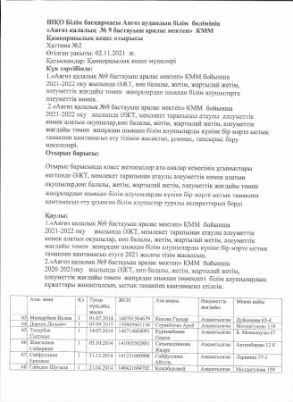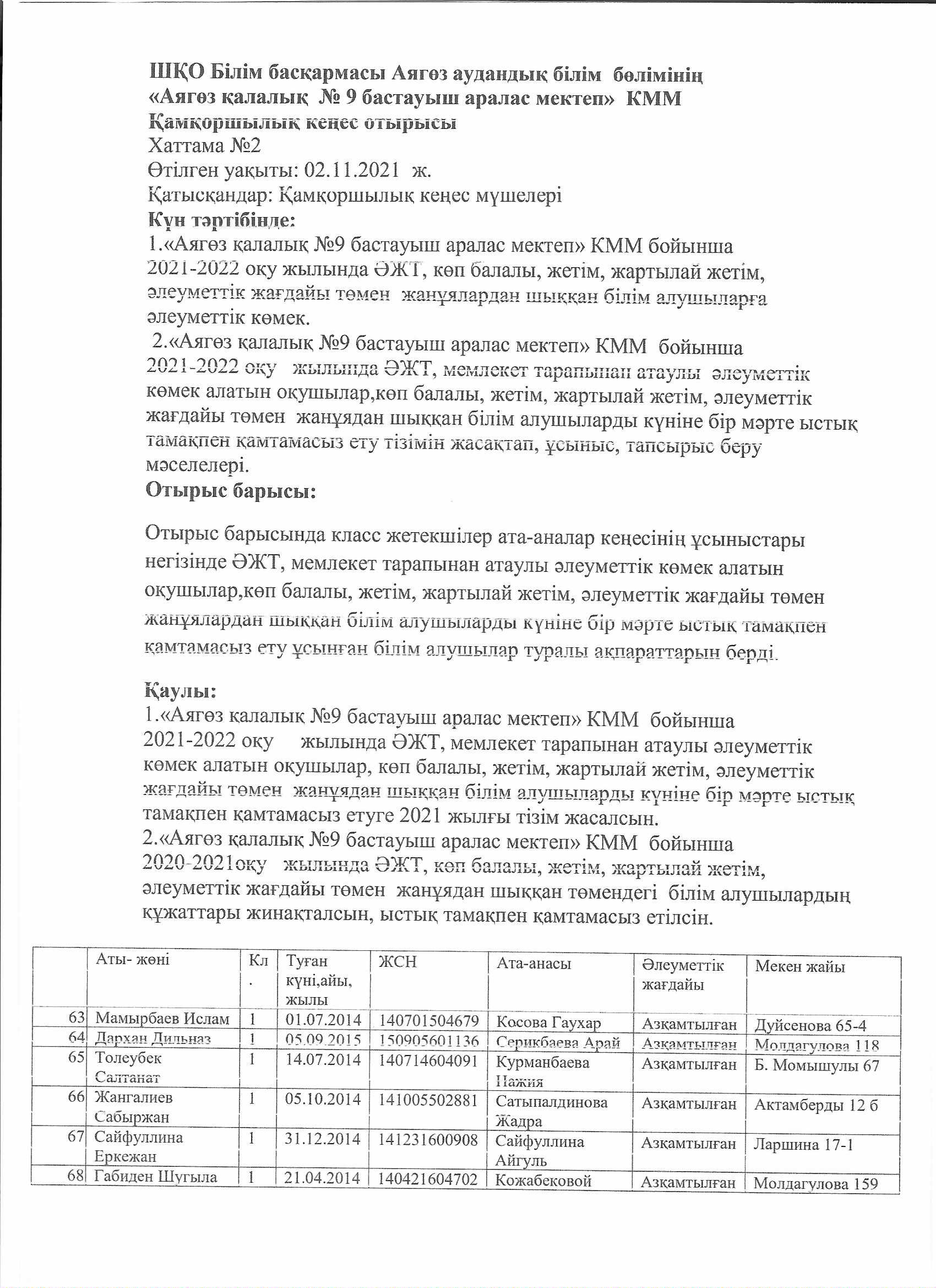 02.11.2021ж."Аягоз қалалық №9 бастауыш аралас мектебі" КММ -де