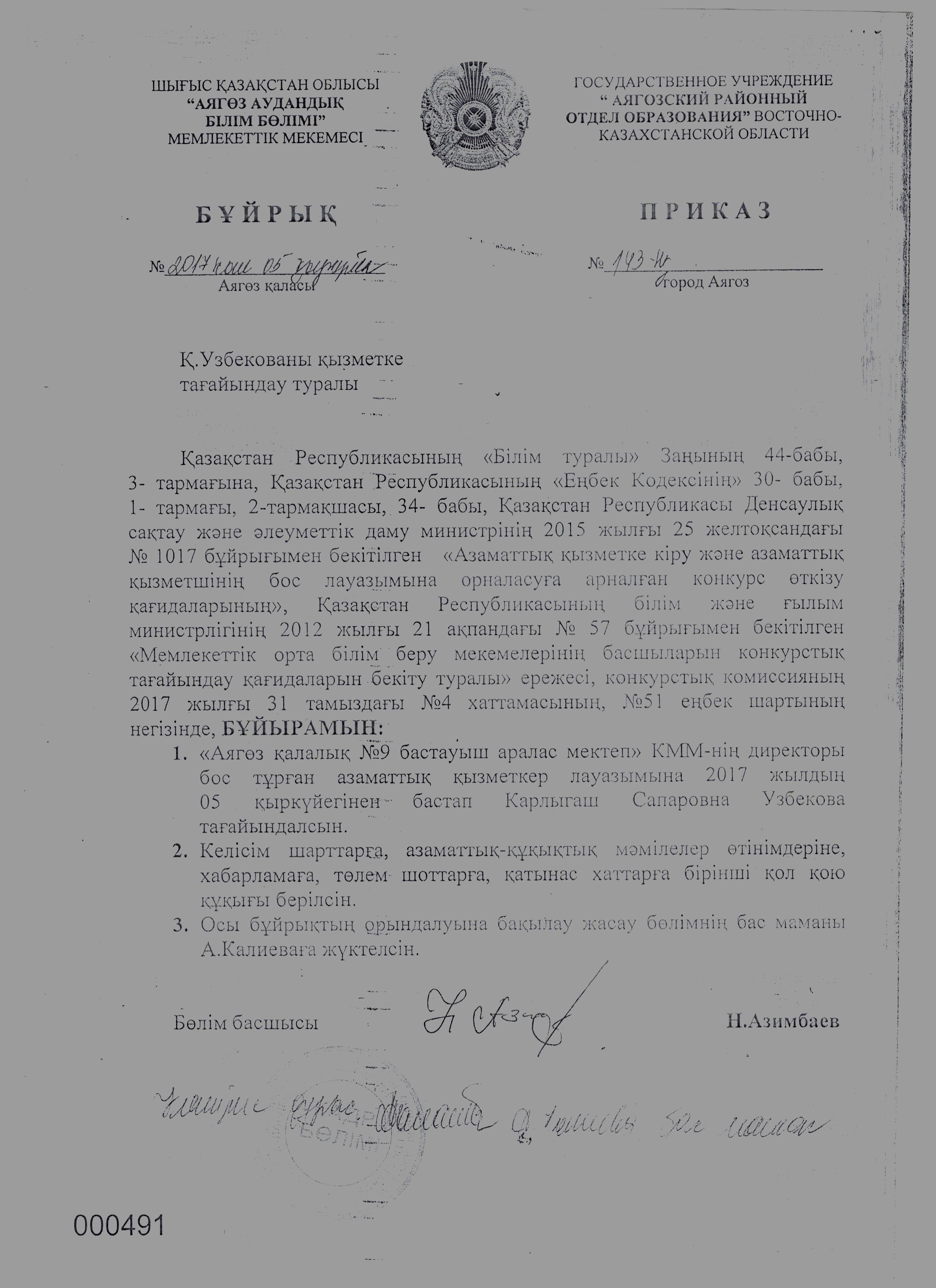 Приказ о назначении директора Узбековой К.С. https://drive.google.com/file/d/1kaZ8aenQHmrwFJK-S48CVif4STaGH3fv/view?usp=drive_link