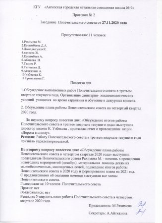 Протокол ПОПЕЧИТЕЛЬСКИЙ СОВЕТ 2020 ГОД