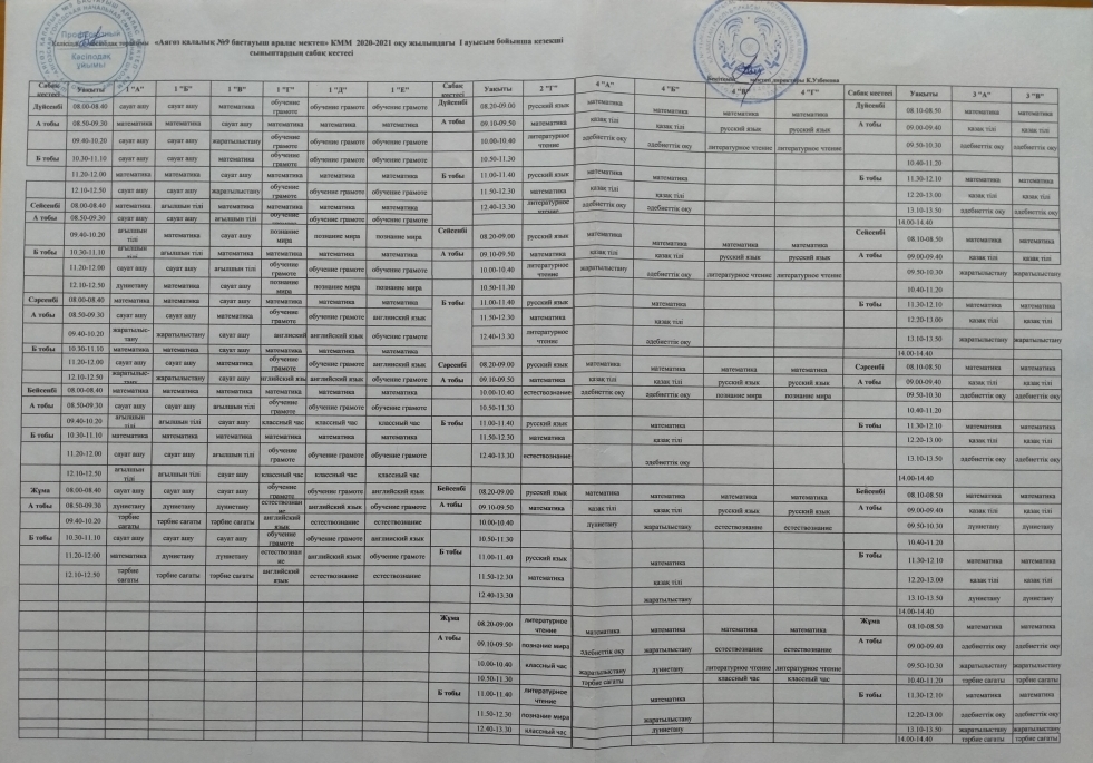 » Аягөз қалалық №9 бастауыш аралас мектеп" КММ-нің сабақ кестесі