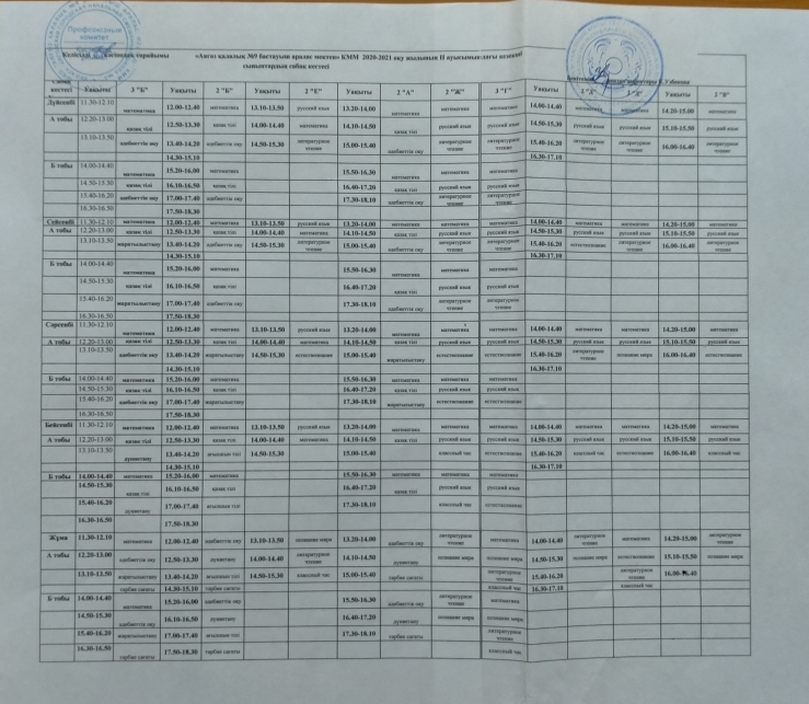 Аягөз қалалық №9 бастауыш аралас мектеп" КММ-нің сабақ кестесі