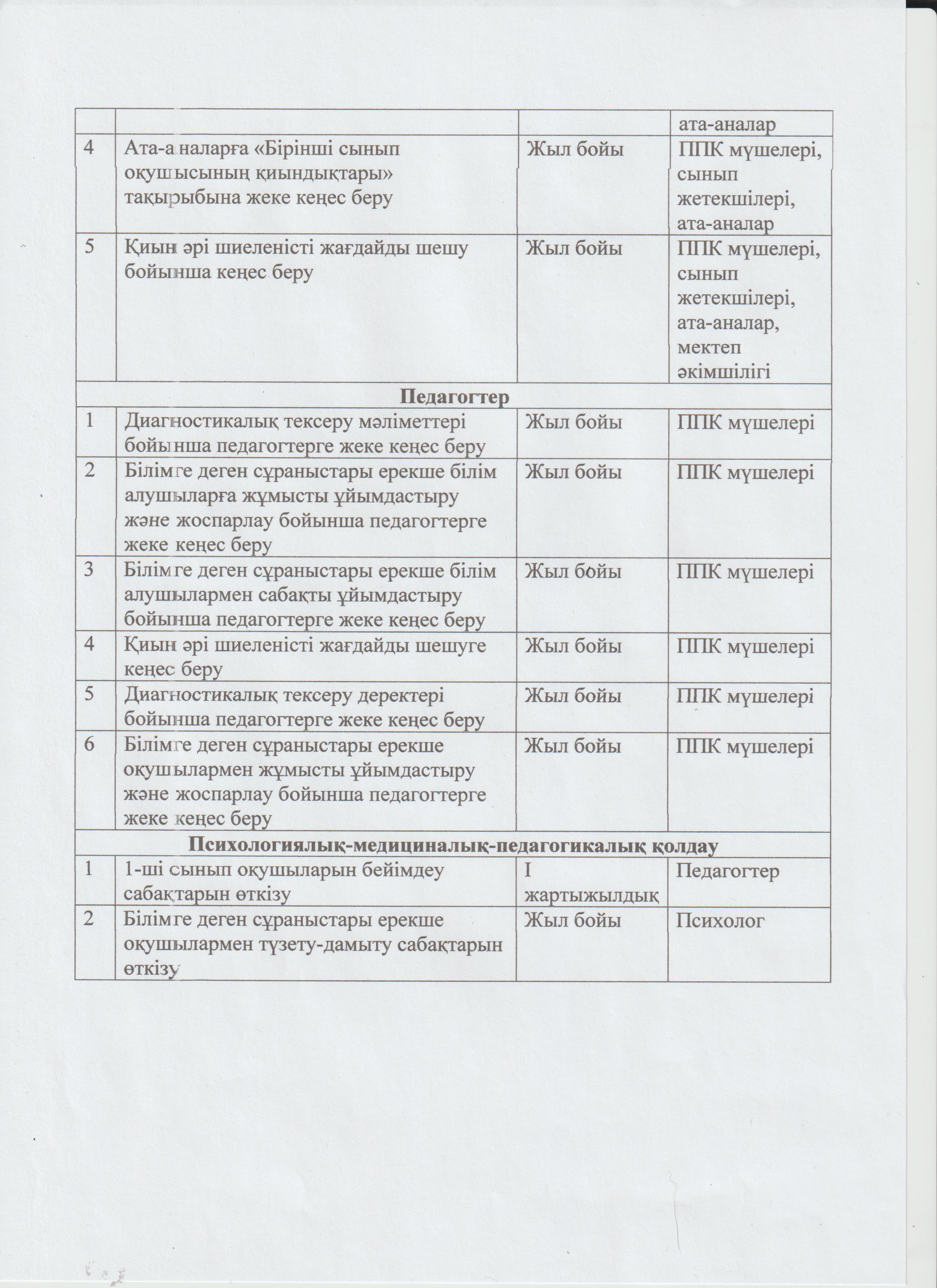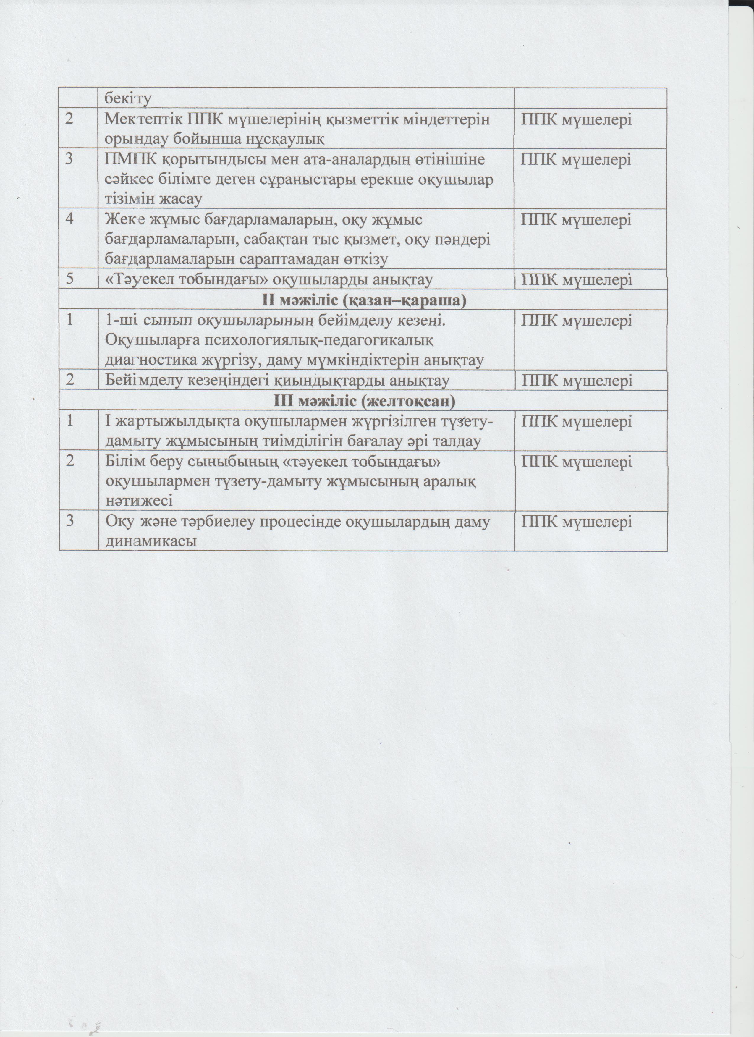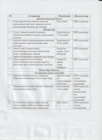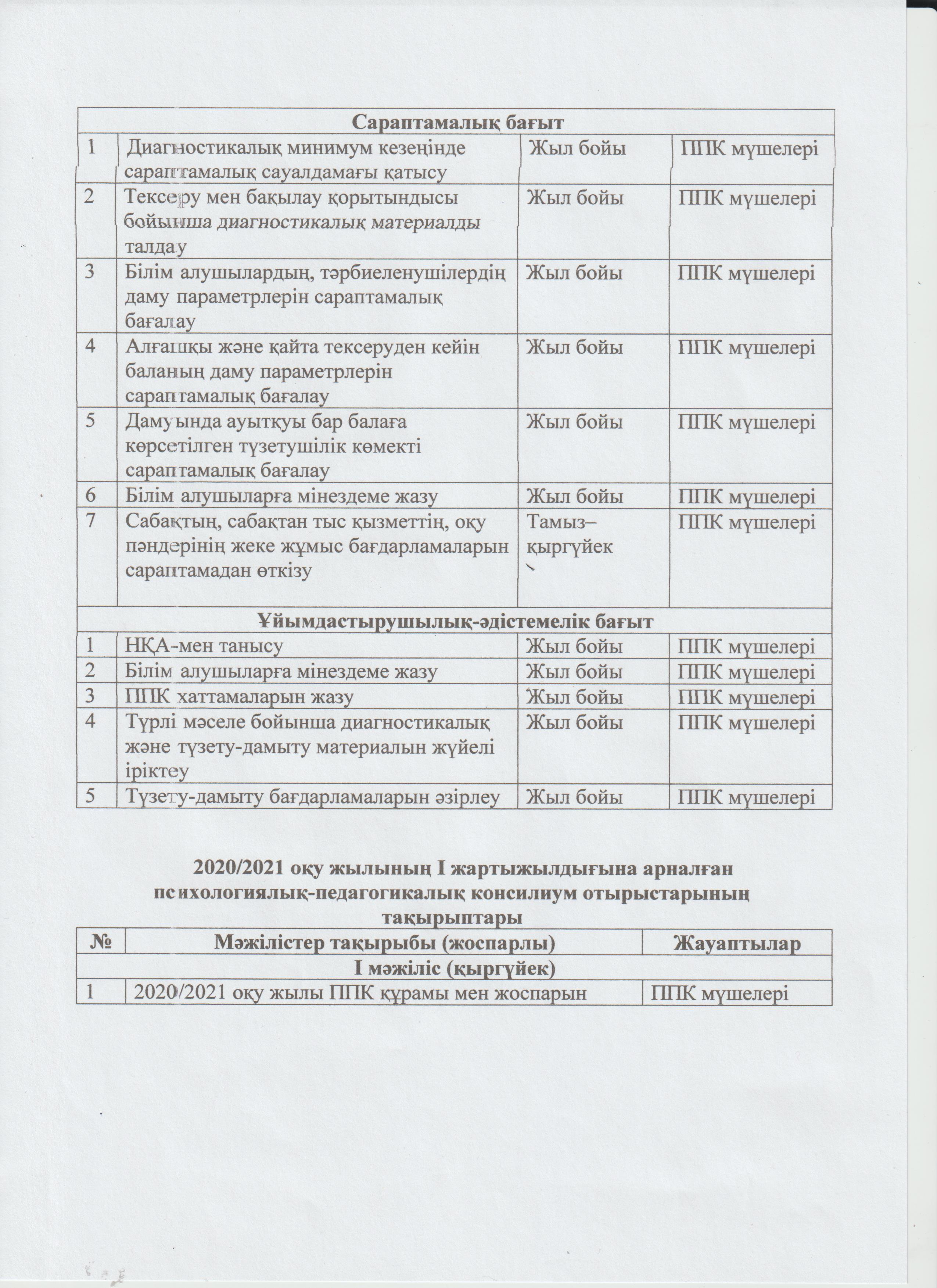 2020-2021 оқу жылының І жартыжылдығындағы психологиялық-педагогикалық консилиумнің жұмыс жоспары